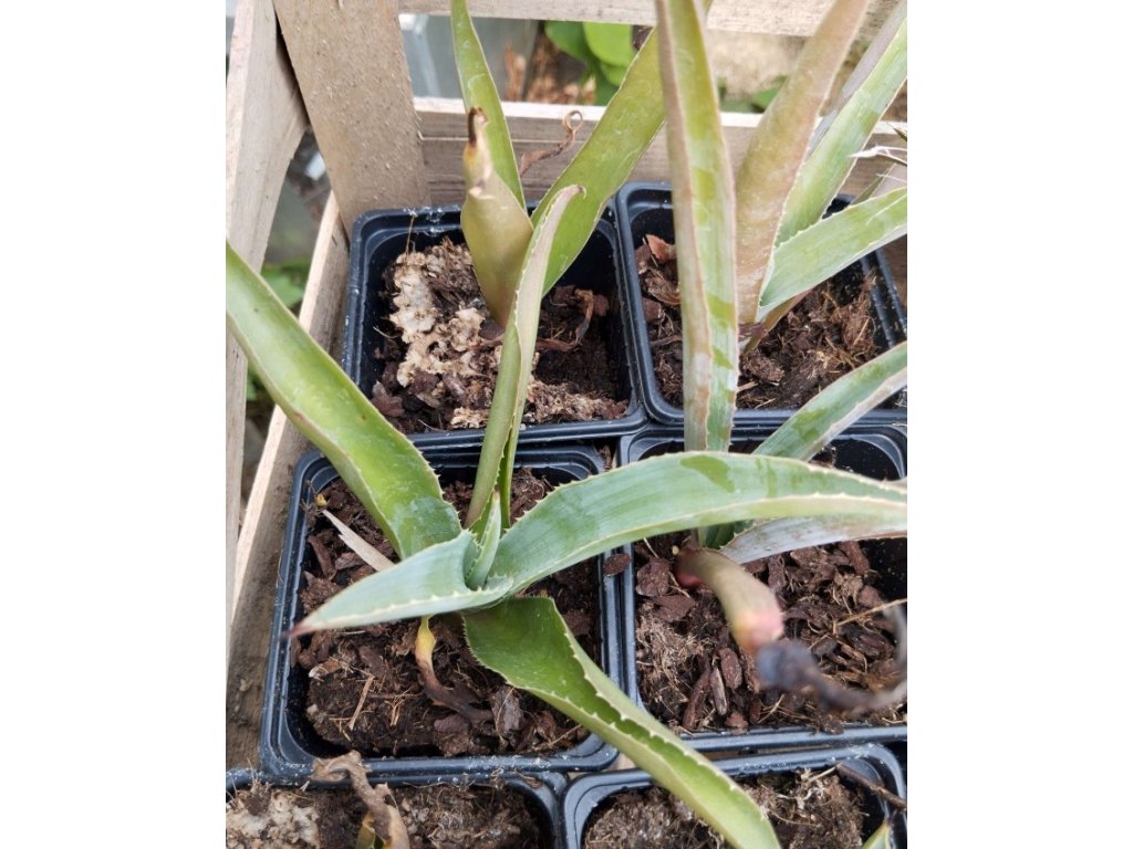 Monokarpická sukulentní rostlina s krátkou lodyhou, jen 20–60 cm dlouhou. Listy jsou úzce kopinaté, 30-60 cm dlouhé a 2-3cm široké, tuhé, přímé, zelené až žlutozelené, na okraji trnité, na vrcholu špičaté; trny jsou 1-3 cm dlouhé, šídlovité, zploštělé, hnědé. Květenství je latnaté, s horizontálně odstálými větvemi. Plodem je vejcovitá dřevnatějící tobolka.