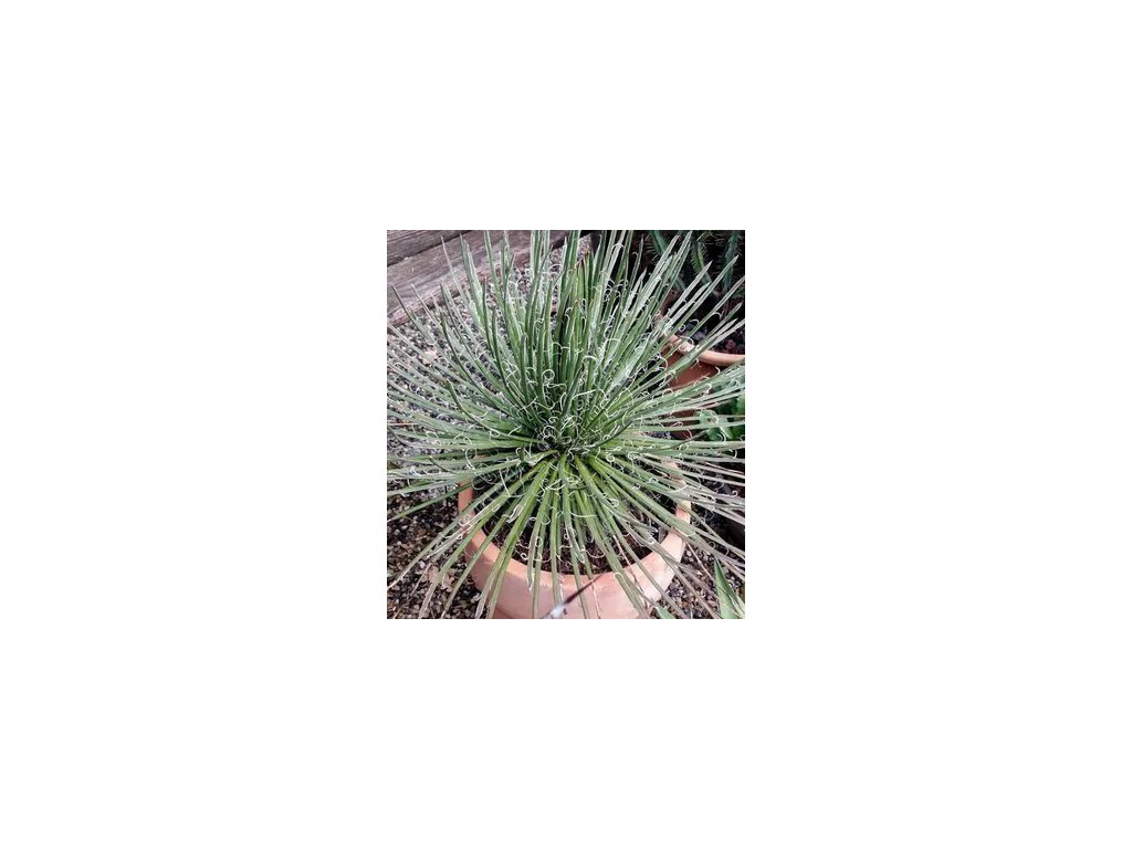 Tato agáve je typická svými úzkými, tuhými zelenými listy s širokými výraznými bílými znaky. Listy na okrajích nesou velké množství kudrnatých, bílých, nitkovitých vláken. Ve své domovině může být poměrně velká a vytvořit hustou, polokulovitou, obvykle osamocenou růžici listů, která může být až 100 cm vysoká a 150 cm v průměru.