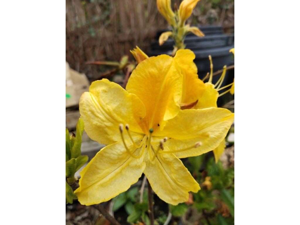 Azalea Knapp Hill ´Goldtopas´ vel. 30-40cm, K2,5Goldtopas je skvělou volbou, pokud potřebujete dřevitou azalku, která není ani žlutá, ani oranžová. Prostě zlatá jako odpolední slunce. Květenství jsou až 13 cm široká a jednotlivé květy mají 7-9 cm. Zblízka jsou lehce voňavé. Tato azalka roste kompaktně a v 15 letech má cca 1,10m na výšku a 1,40 m do šířky. Kvete od konce května do poloviny června. Opadavé listy jsou středně zelené, podlouhlé. Vyšlechtil Hans Hachmann v roce 1983.