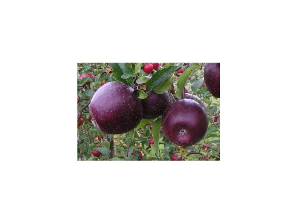 - Plod: velký, kulovitý, slupka barvy fialovočervené, pokrývající většinu plodu; dužina je lehce růžová, velmi pevná, šťavnatá, chutná, sladkokyselá