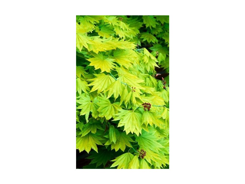Acer shirasawanum ´Aureum´, vel. nabízených rostlin je 25-40cm, K3. Jedná se o jeden z nejkrásnějších javorů, je výrazný díky zářivě žluté barvě listů. Na podzim postupně získá oranžovožlutou až červenou barvu. Tento druh javoru roste velmi pomalu do výšky 2-3 m. Stanoviště vyžaduje raději polostinné, půdu stále vlhkou ale nezamokřenou, propustnou, výživnou, mírně kyselou.Doplňkové parametry